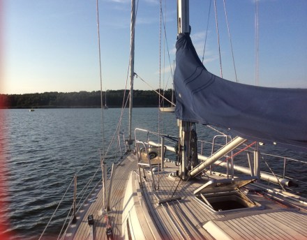 Von da an war es mal wieder ein schönes Segelerlebnis. Bei Windgeschwindigkeiten knapp unter 20 kn fuhren wir unter Segeln und Sonne das Hiddenseefahrwasser entlang.