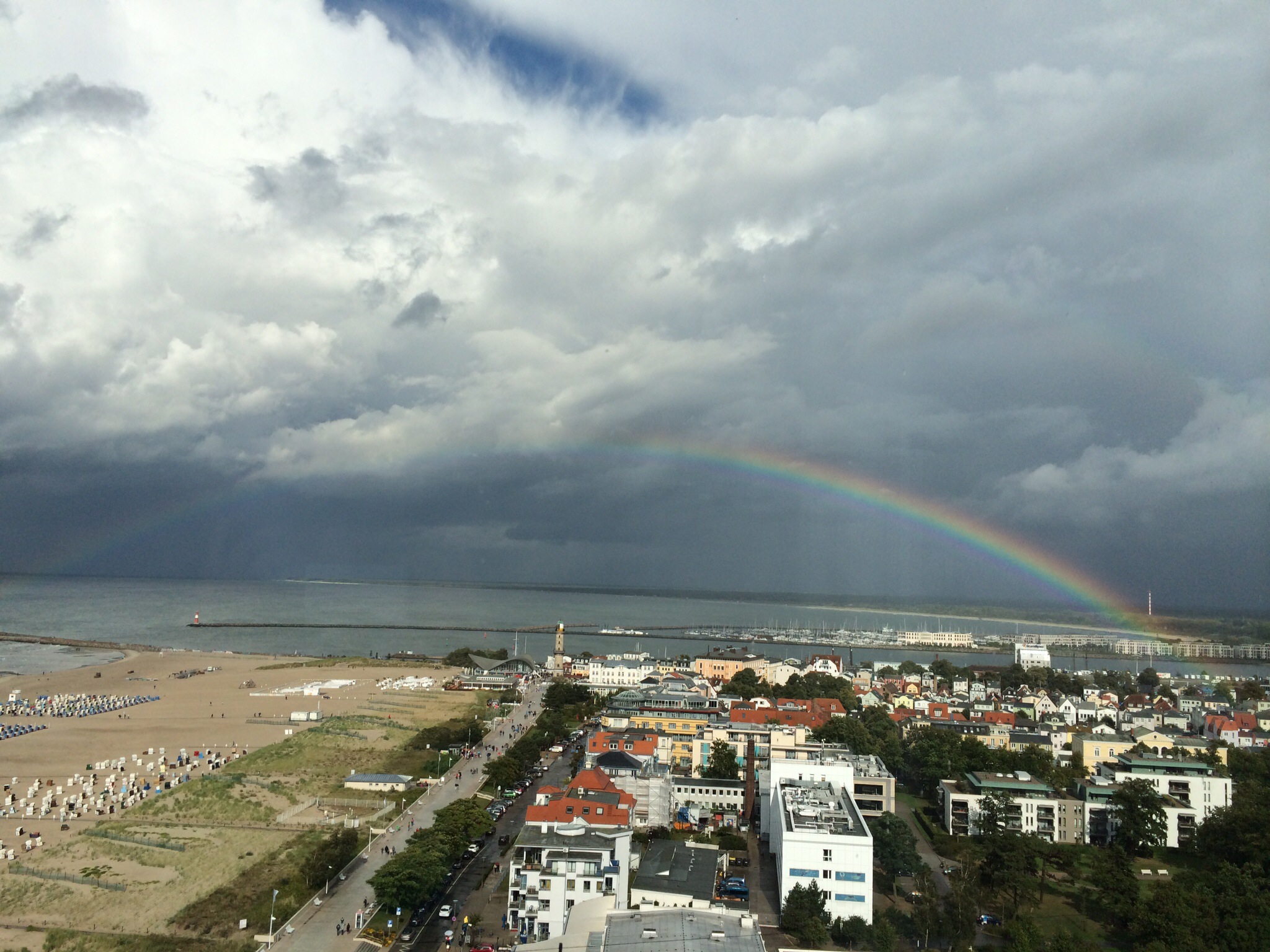 Wie als ob der Regen auf uns gewartet hatte, fing es pünktlich nach dem Festmachen in Kühlungsborn an zu schütten.